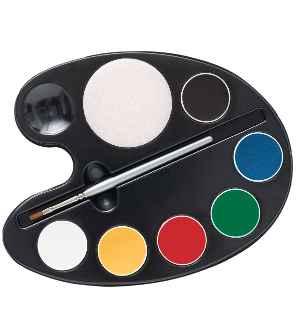 Modo d’uso: attiva il colore con poca acqua e applica su viso o corpo con spugna o pennello, poi rimuovi con acqua e sapone.